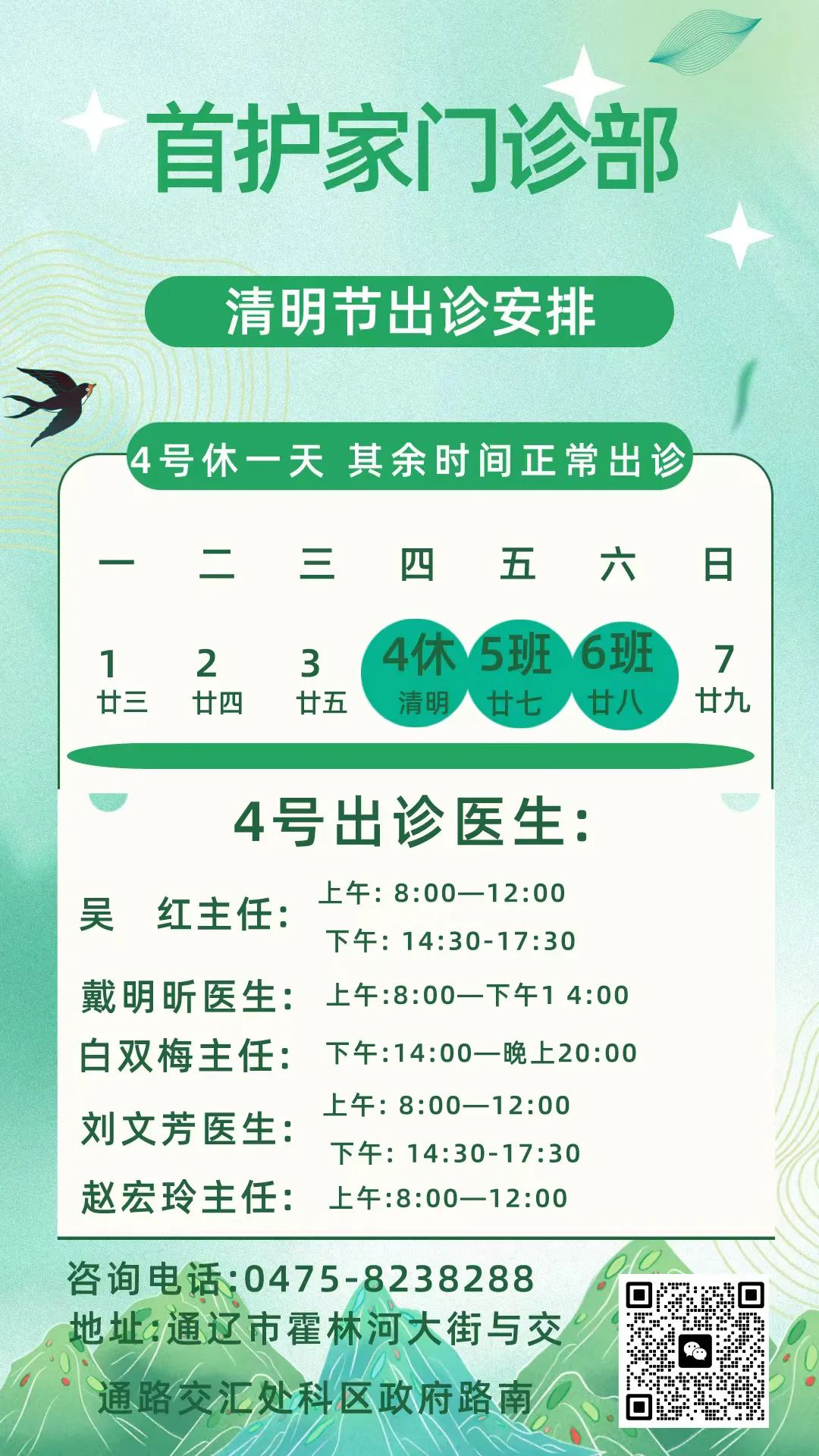 首护家门诊部—清明节正常接诊通知