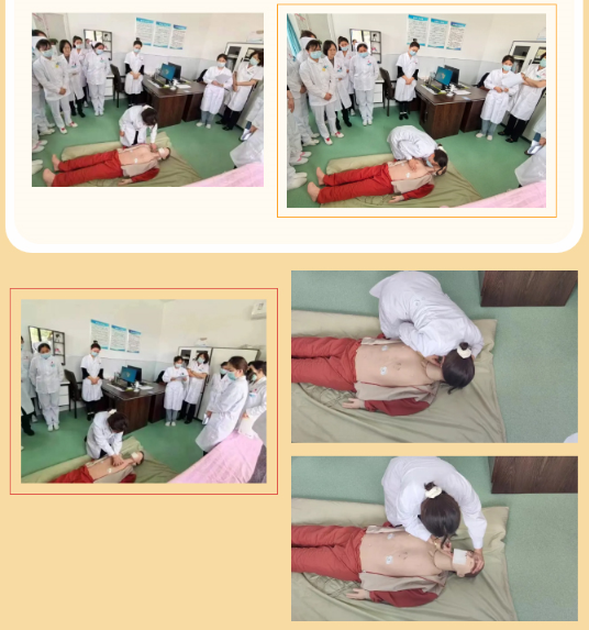 培训过程中,利用医用模拟人模型对医务人员进行徒手心肺复苏操作规范培训及现场指导,对如何判断病人心跳呼吸停止、心肺复苏的指征、操作步骤、救助过程中的注意事项、复苏成功的指征等进行了详细的讲解和演示。